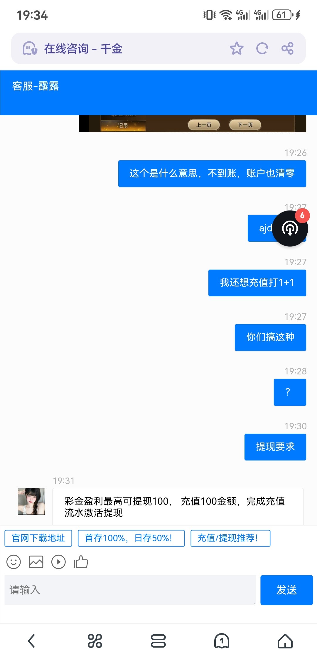 在论坛链接注册送的彩金20,打到125提了110留15,后面直接清零,只注册一个账号无任何违规行为,平台让充值100打流水只能提彩金盈利的100,充了100就相当于放弃1+1的权力,还没开业就自黑,纯纯的大黑台,避雷啊。