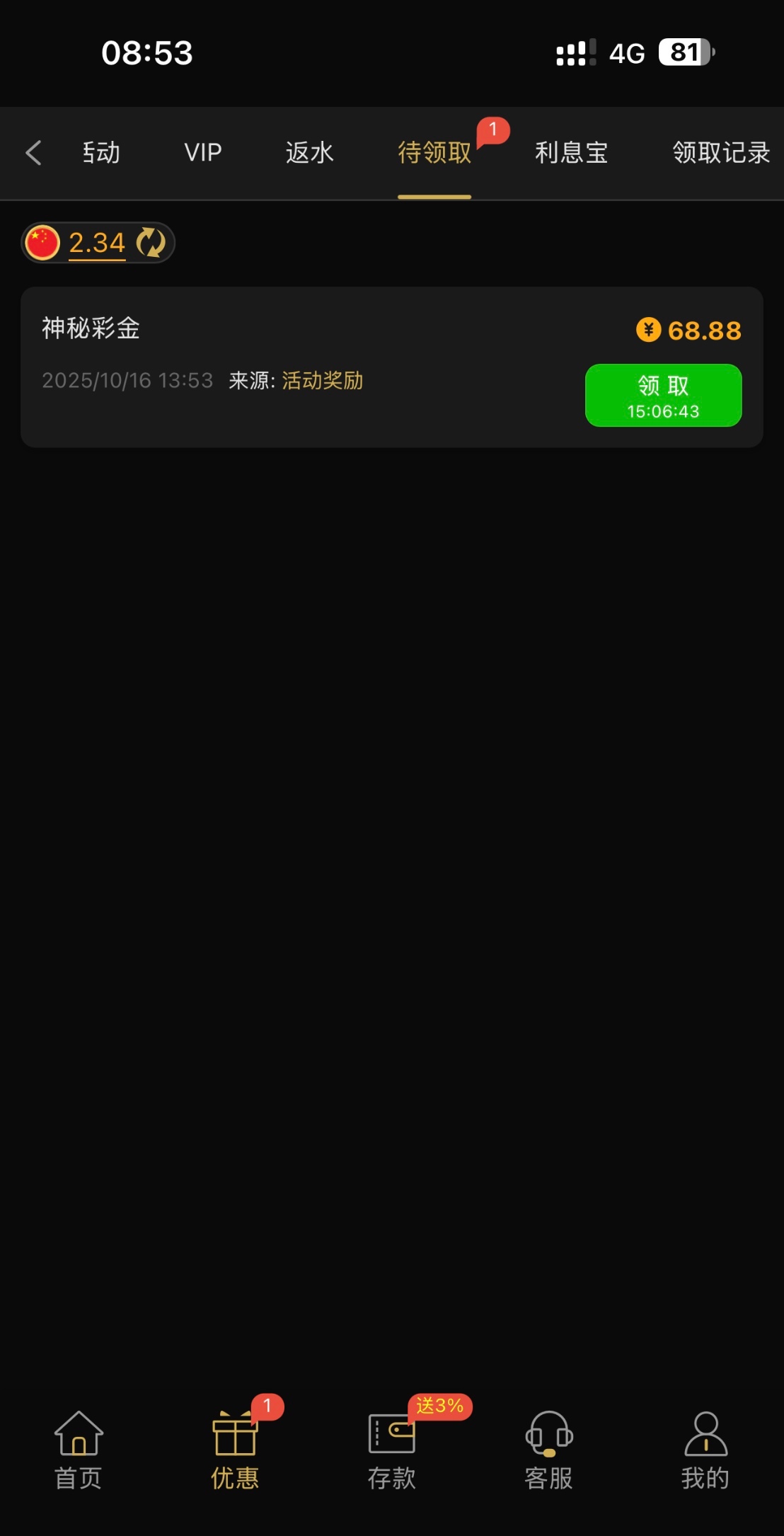 今年经常充值的台没有几个,逛了几个台子就这一个送了个神秘彩 网址08.app