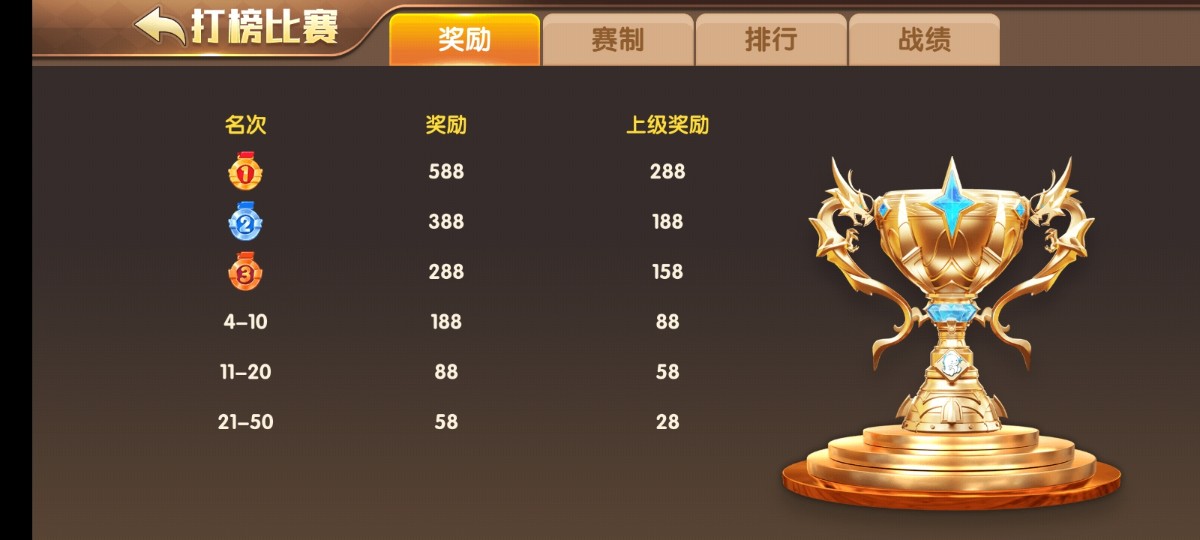 每晚7-8点打榜比赛,得提前报名参赛,否则到点没有比赛资格,前50名都有奖金58-588,上榜的奖励结束后会派发到银行里